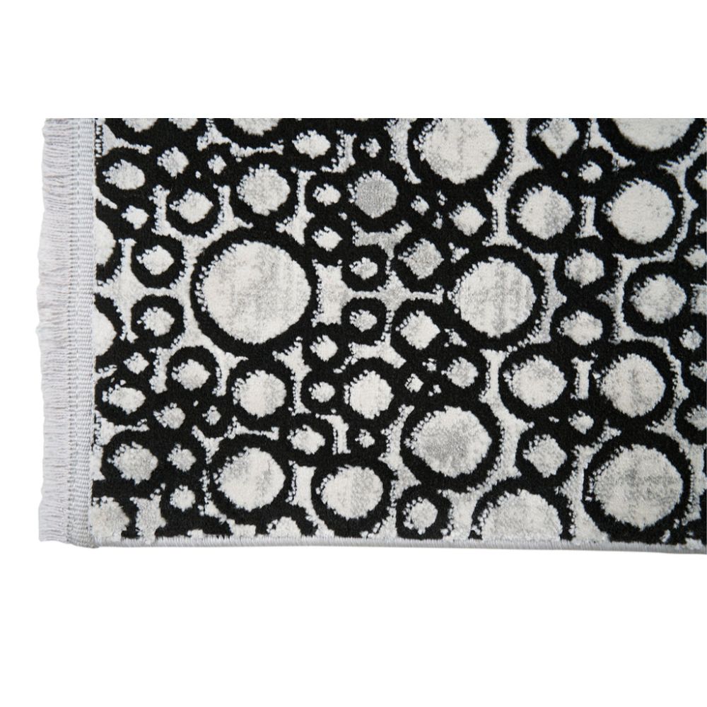 Enjoy the combination of style and function with this black geometric area rug that transforms your home environment. Its machine made polypropylene carpet fibers resist dirt and stains, keeping your floors looking fresh longer. The soft texture rug surface invites relaxation while the self fringed carpet edges add a classic detail that enhances any décor.