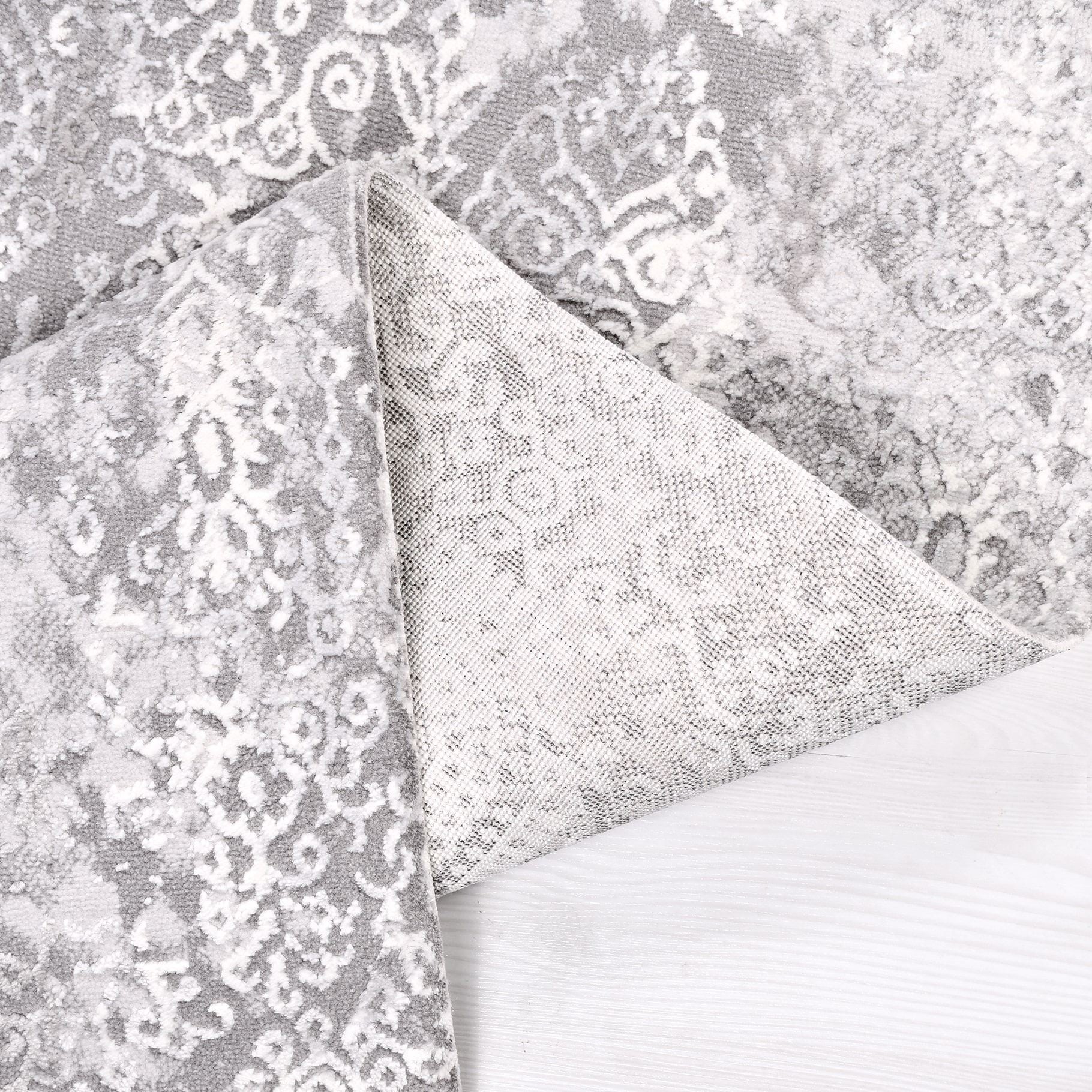 Modern Area Rug – Machine Made Grey Rug with Laser Cut Edges, Durable Polypropylene