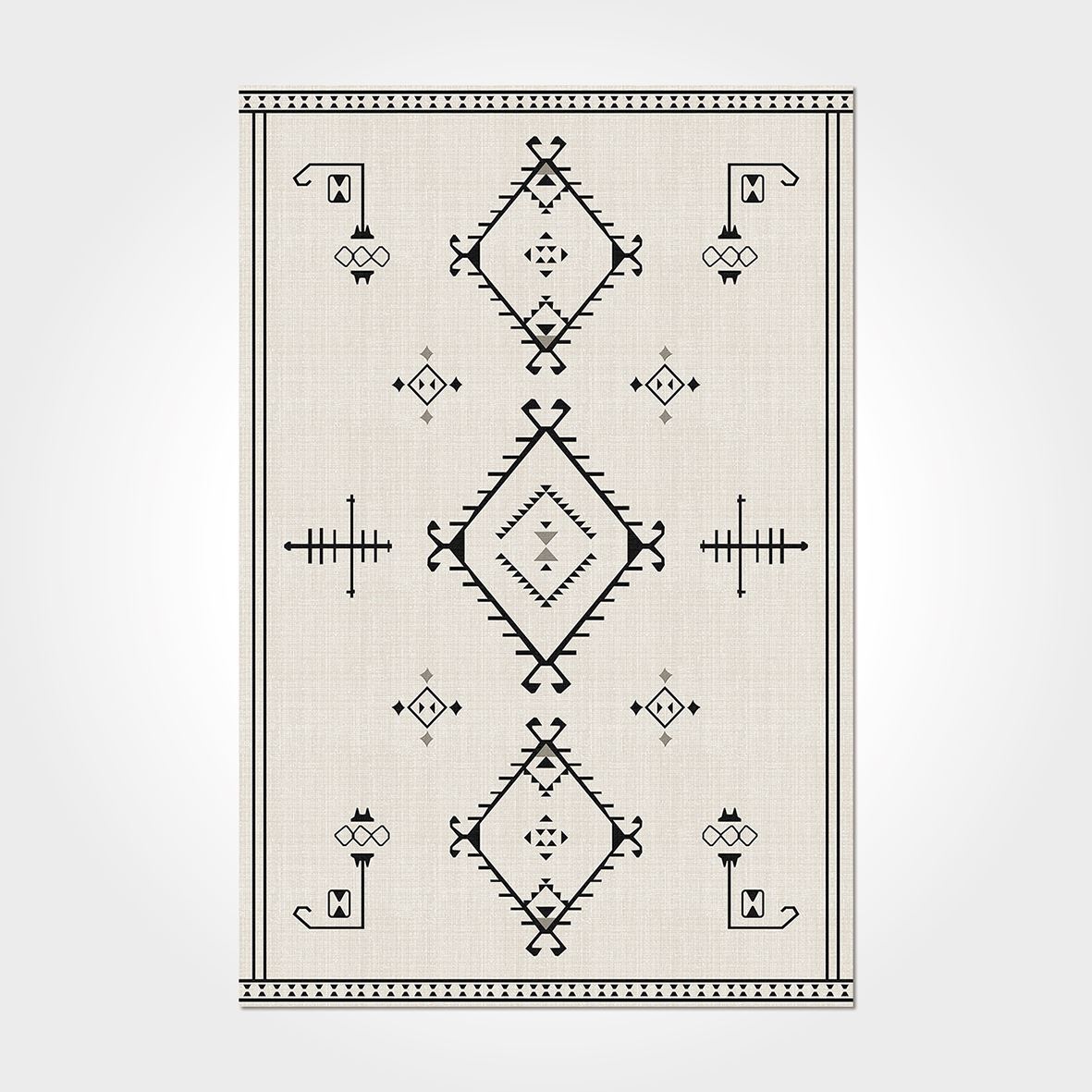 Digital Print Area Rug - Cream Geometric Chenille Cotton Washable Non Slip Carpet
