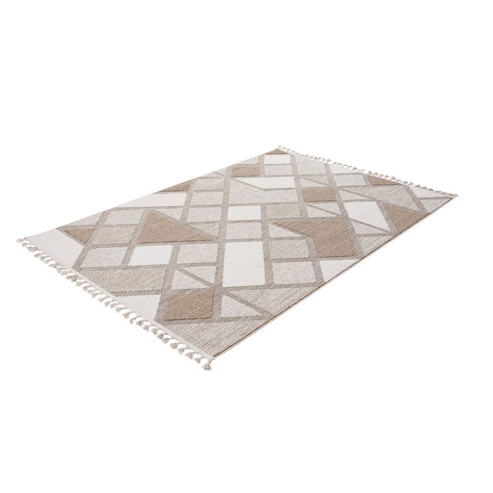 The Cream Geometric Rug is a machine made polypropylene area rug designed to enhance your modern living room with its stylish geometric pattern rug while providing lasting durability and comfort. This cream geometric rug offers a flatweave area rug construction that ensures a smooth surface and easy maintenance. Crafted by Dolce Vita, this durable polypropylene rug features a non slip backing that keeps the rug securely in place, making it safe for high-traffic areas and homes with children or pets.