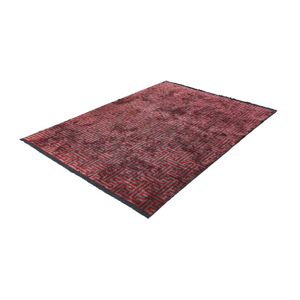 Red Geometric Area Rug - Chenille Yarn Machine Made Durable Floor Covering by Dolce Vita