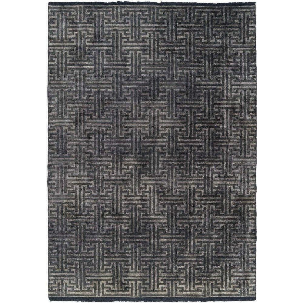 Chenille Yarn Area Rug - Durable Machine Made Rug | Anthracite Geometric Flatweave