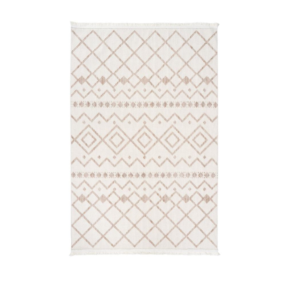 The Geometric Area Rug is a machine made rug designed to bring a fresh and stylish look to your living spaces. Featuring a cream base with ethnic pattern accents, this bohemian carpet combines modern geometric carpet design with traditional boho style rug elements to create a unique visual appeal. Perfect as a living room rug or hallway carpet, this flatweave carpet is robot vacuum safe rug, ensuring easy maintenance without compromising its quality or appearance. Crafted by Dolce Vita, this washable area rug offers durability and comfort, backed by quality assurance for lasting use.