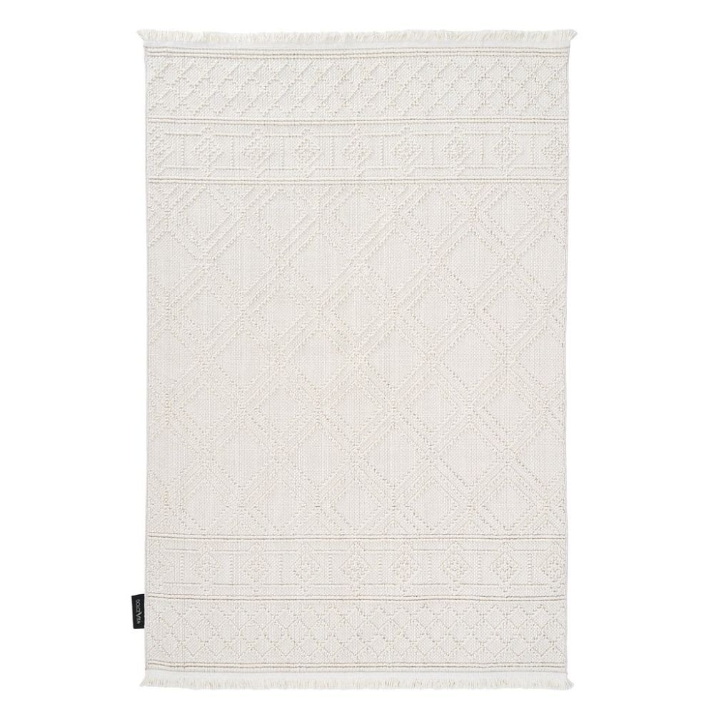 Cream Geometric Area Rug – Machine Made Flatweave Non Slip Floor Rug