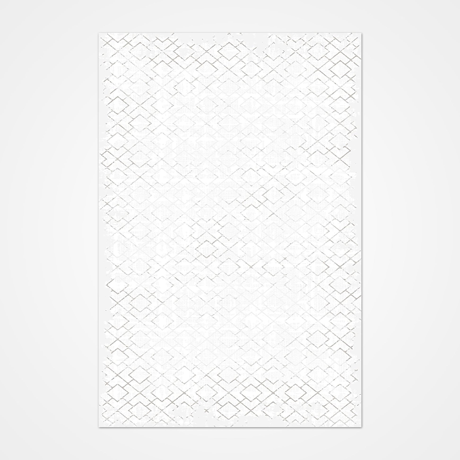 White Geometric Area Rug - Machine Made Rug with 6mm Pile Height, Durable Polyester Carpet