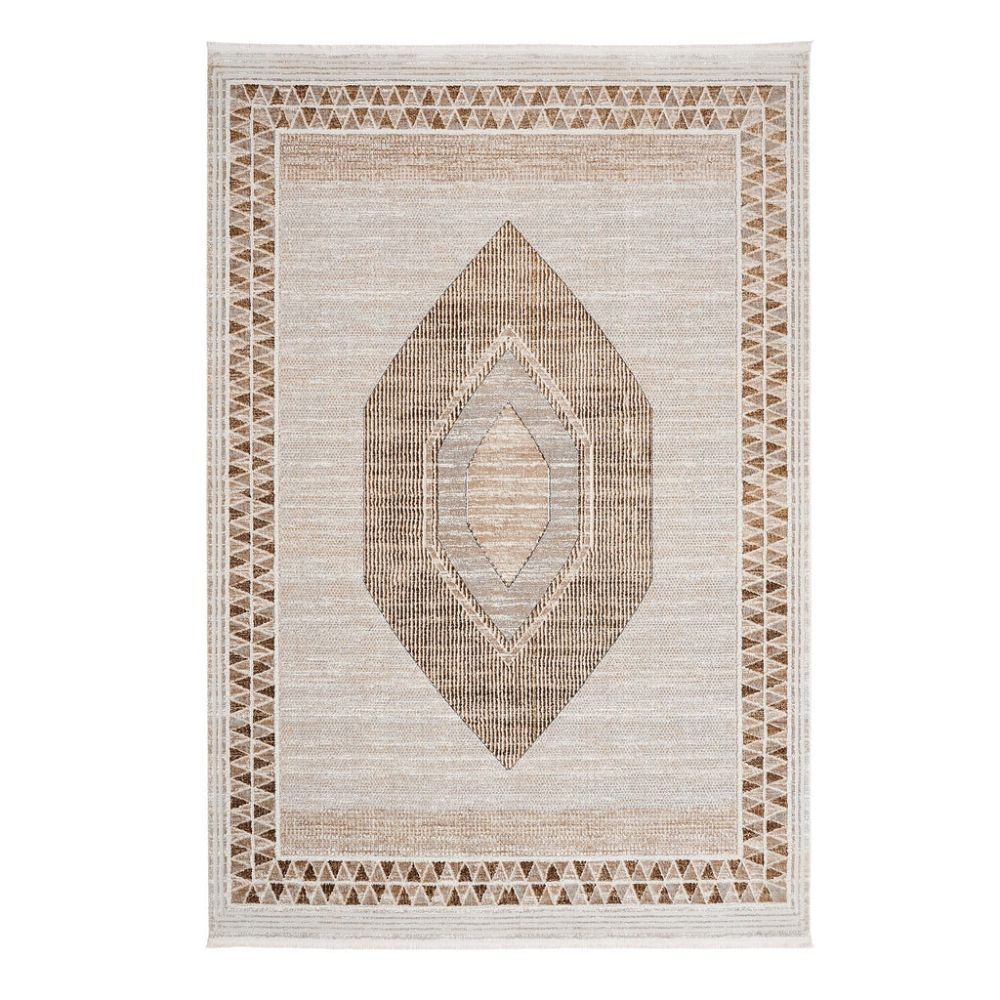 This flatweave rug measures precise dimensions suitable for most living rooms, providing a comfortable and stylish foundation for your décor. The ethnic line carpet design adds texture and depth to your floors, while the cream color palette brightens the room and complements various interior themes. Its machine crafted floor covering quality guarantees long-lasting performance and resistance to wear.
