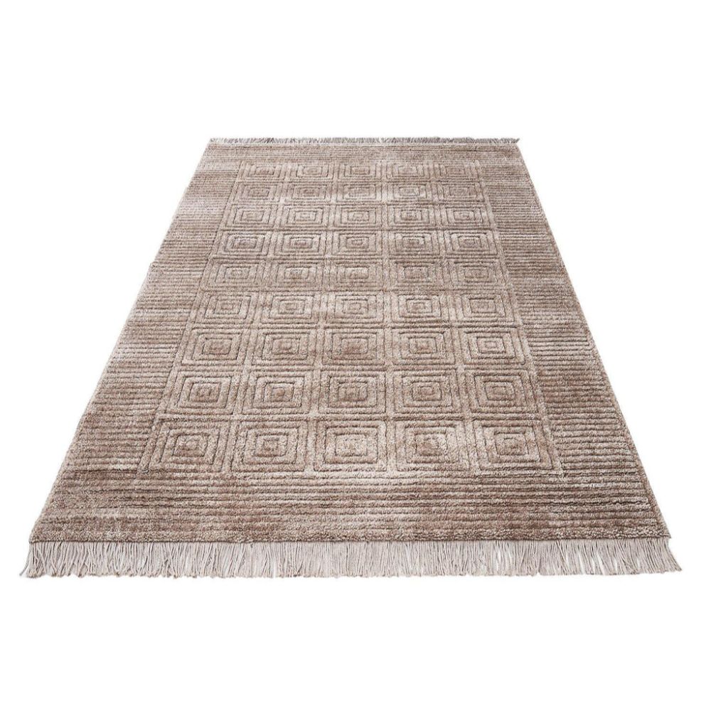 The machine made area rug from Dolce Vita offers a perfect blend of style and function for your home. This geometric mink rug with soft pile carpet delivers a plush 21 mm pile height that enhances comfort while maintaining durability. Designed as a self-fringed rug, it adds a refined touch to any room, making it ideal for living rooms, bedrooms, or home corridors. The washable area rug features an antislip floor mat backing that secures the rug in place, ensuring safety on hardwood or tile floors. Lightweight and easy to handle, this machine woven carpet combines modern geometric patterns with practical benefits to elevate your interior decor.