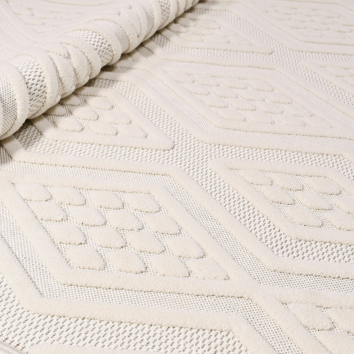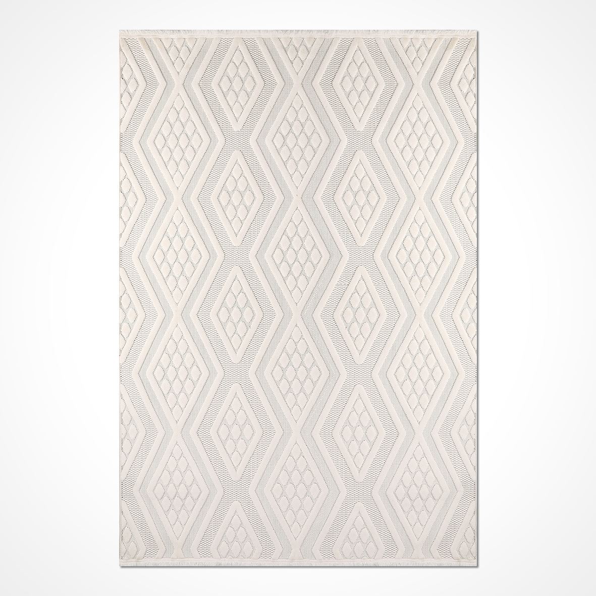 Geometric Area Rug – Machine Made Cream Polyester Floor Rug with 8mm Pile