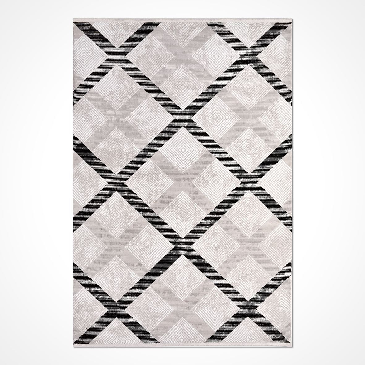 This grey beige rug combines subtle neutral tones with geometric patterns to complement various interior styles. The machine woven carpet construction delivers consistent texture and durability, making it ideal for high-traffic areas.