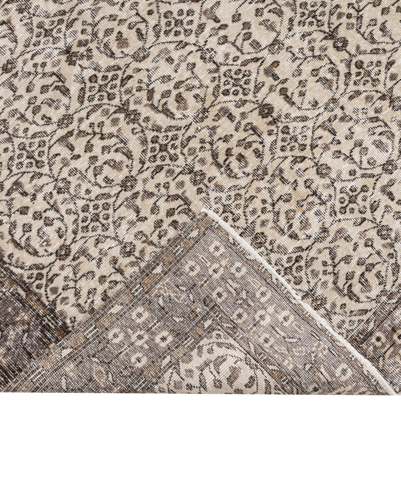 This vintage brown rug features a rustic framed design that complements various interior styles, from farmhouse to bohemian. Its 5x9 feet size fits perfectly in medium-sized spaces, creating a welcoming atmosphere without overwhelming your room. The brown frame carpet is made from high-quality Anatolian wool, known for its resilience and vibrant color retention.