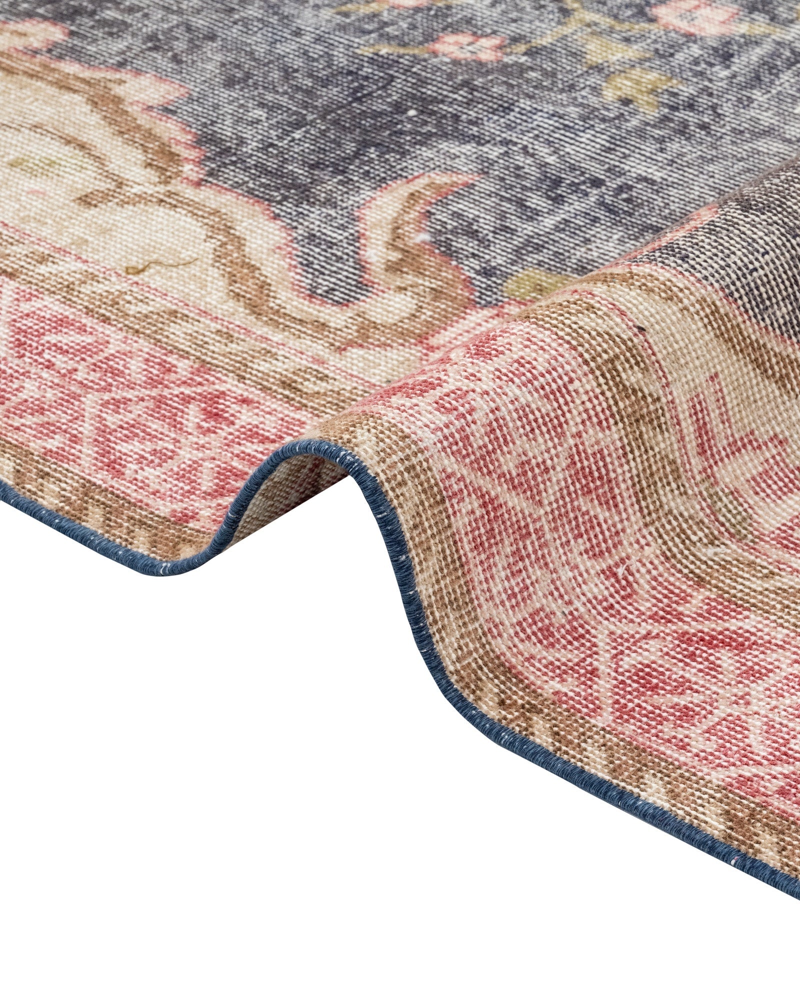 The durable handmade rug provides warmth and comfort underfoot while its medallion pattern carpet design adds a sophisticated focal point to any room. The woven cotton mat base enhances stability and maintains the rug's shape over time. This natural wool floor rug is perfect for those seeking an authentic vintage navy rug with a unique story and character.