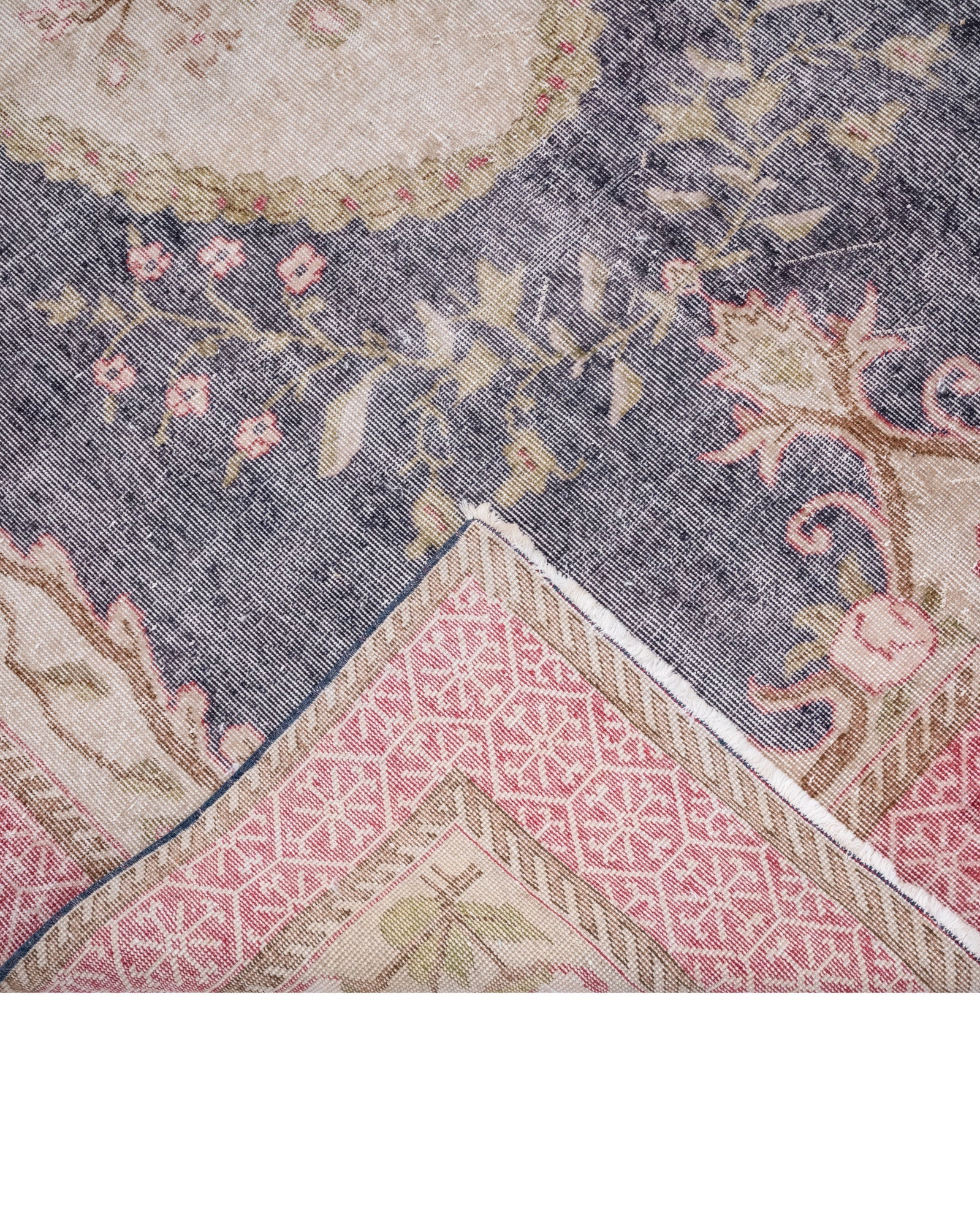 Handmade Wool Rug - Vintage Navy Medallion Pattern 6'9" x 9'7" Cotton Carpet