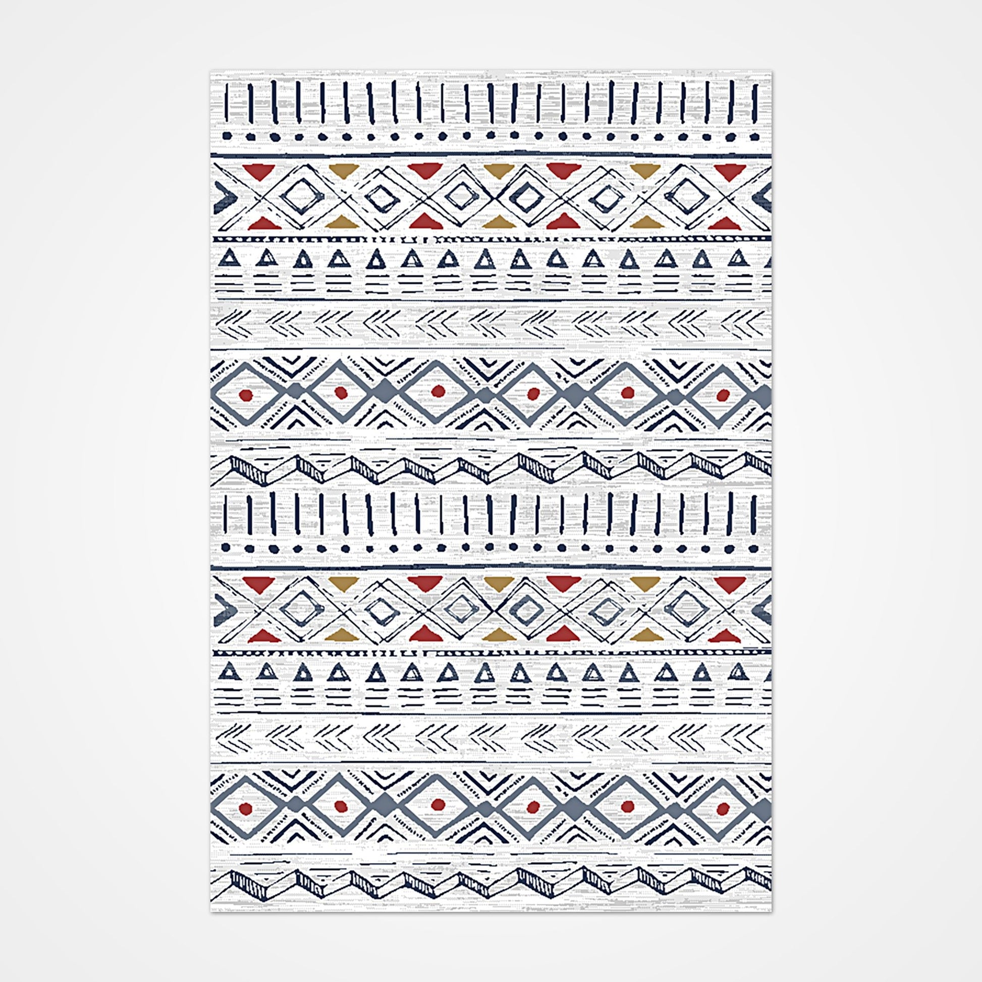 This machine made area rug from Crea combines style and durability to enhance your living space. Crafted with high-quality acrylic yarn, this navy white rug features a geometric pattern that brings a modern floor covering solution to your home. Designed with a 10mm pile height, it offers a soft yet resilient surface ideal for high-traffic areas like your living room.