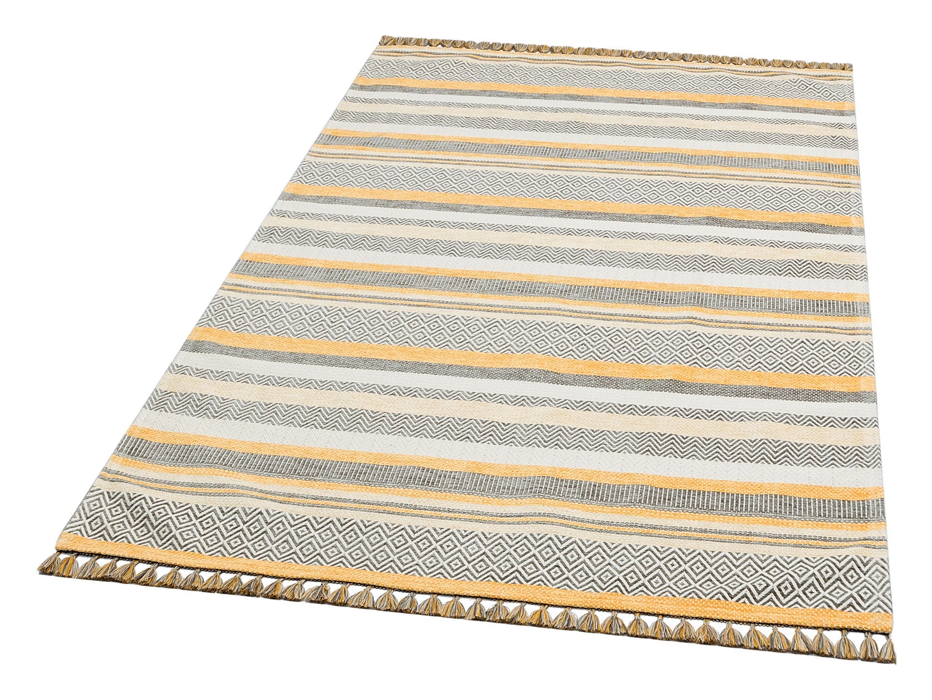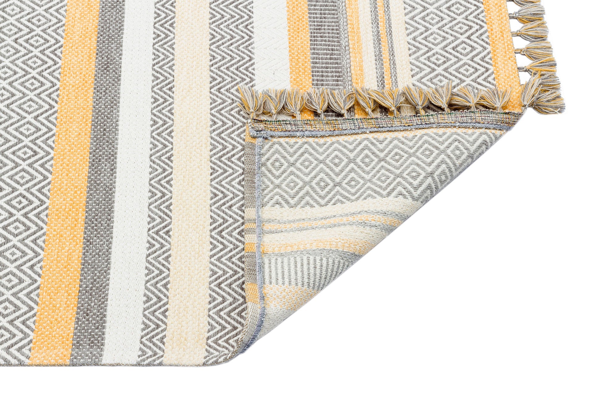 Yellow Striped Cotton Rug – Machine Made Area Rug | Non Slip Washable Antibacterial