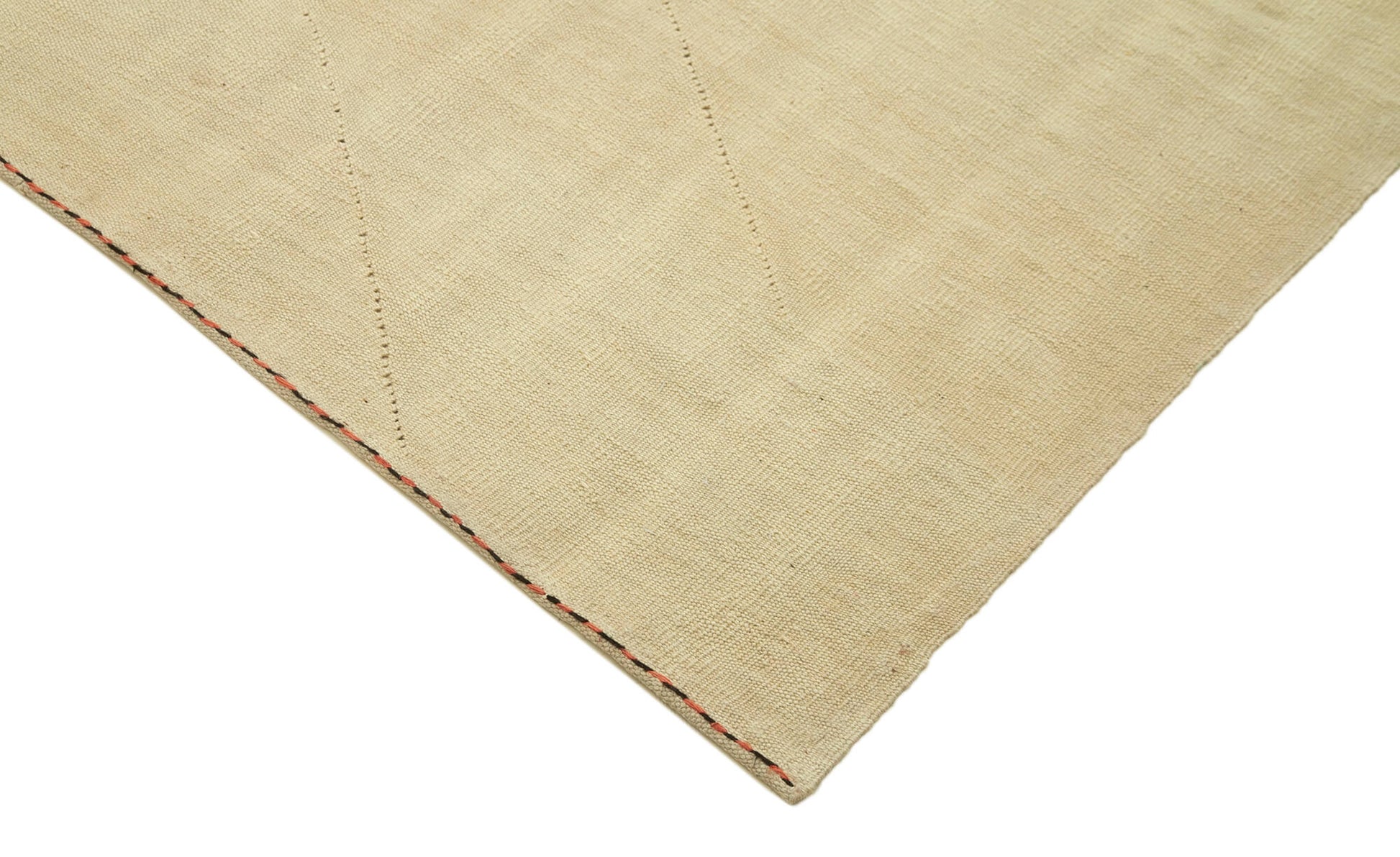 This modern wool rug features a neutral color palette with beige tones that blend seamlessly into any décor. The cotton backing rug adds stability and prevents slipping, enhancing safety and longevity. Each Turkish wool rug is carefully selected, cleaned, and washed using special techniques to neutralize and subtly shift the original colors, preserving the authenticity of these vintage wool carpets aged between 30 to 70 years.