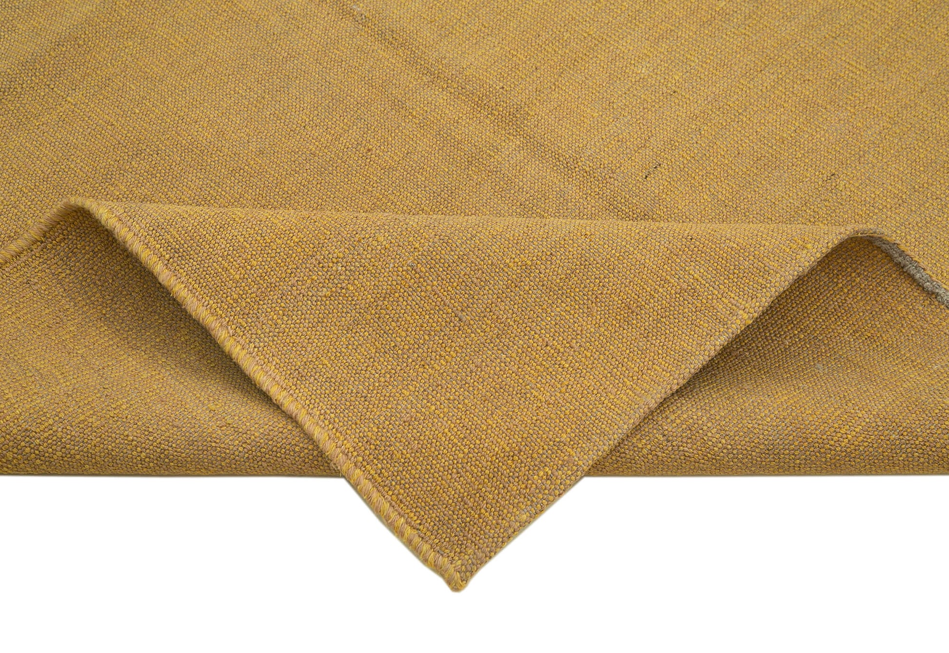 This modern wool rug features a vintage hand knotted carpet construction sourced from 30 to 70 years old traditional Turkish carpets. Each piece is carefully selected, cleaned, and washed using special techniques to neutralize and subtly alter the original colors, resulting in a unique yellow area rug with rich depth and character. The woolen floor mat is both soft underfoot and resilient, making it perfect for high-traffic areas.